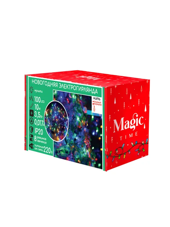 Гирлянда электрическая 10м, мультиколор