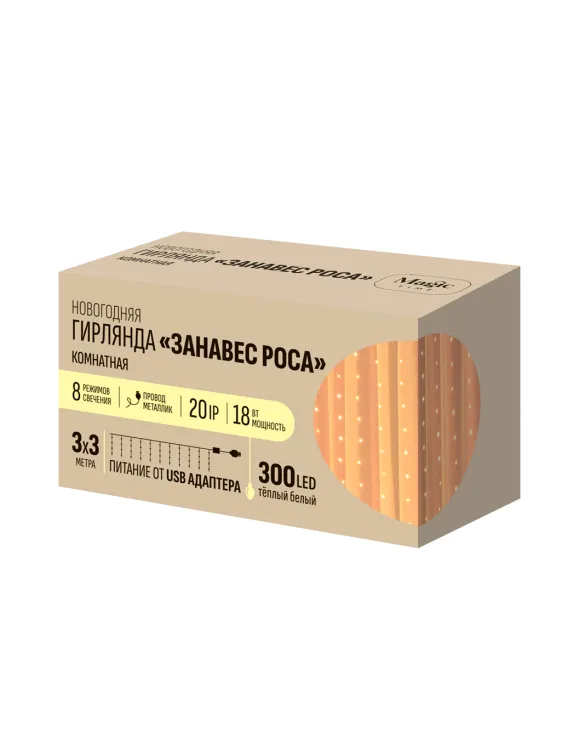 Гирлянда электрическая "Дождик" 3х2м, 300 LED ламп, цв.теплый белый