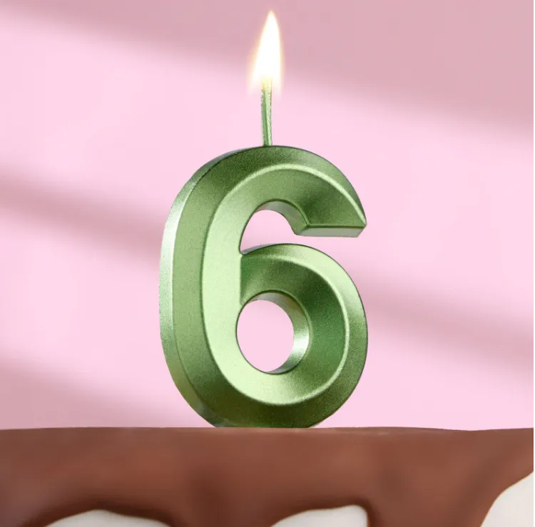 "Грань" Свечи для торта "Цифра 6", цв.изумруд