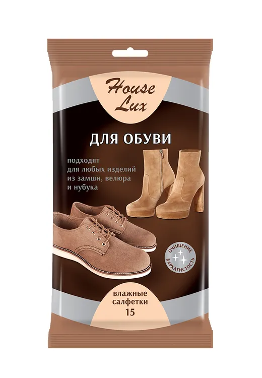 "House Lux" Влажные салфетки для замши, велюра и нубука 15шт.