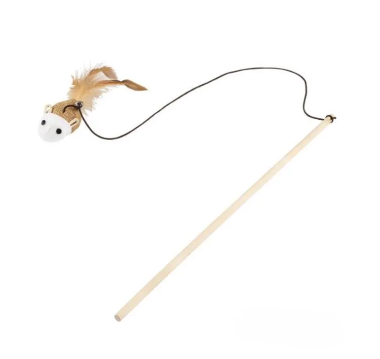 Игрушка-дразнилка на палочке "Мышка" 40см, цв.бежевый