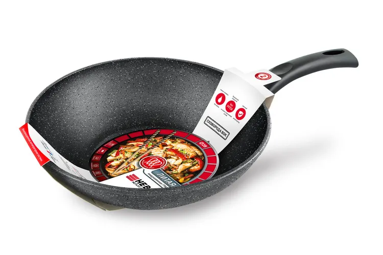 "Индукционная" Гранит" Сковорода Wok литая с индукционным дном 28см, h 9,2см н/р