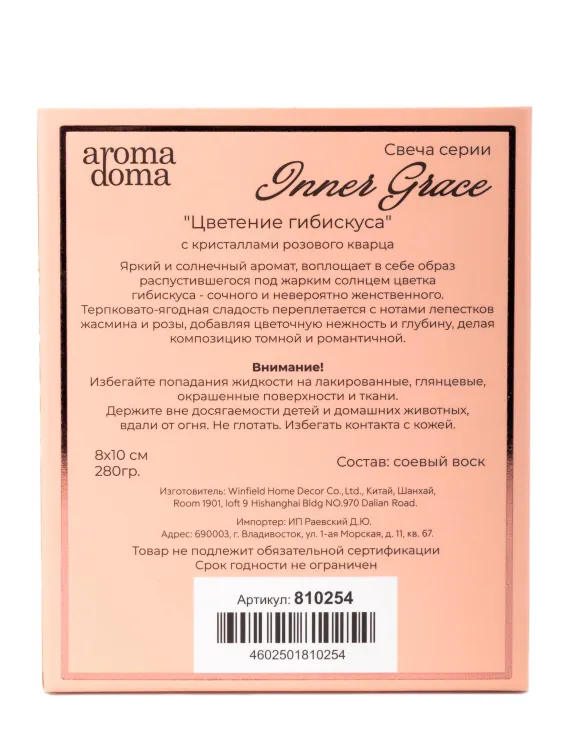 "Inner grace" Свеча "Цветение гибискуса" 8х10см с эффектом потрескивания