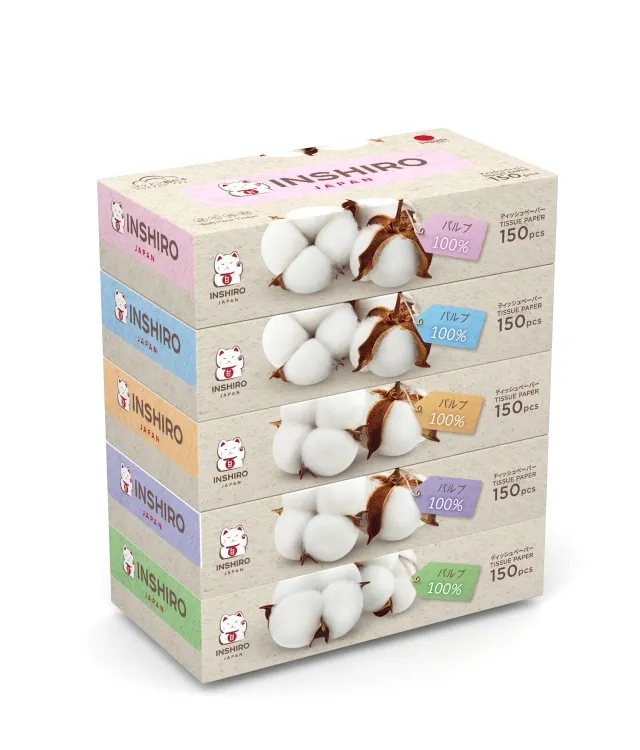 "INSHIRO" Салфетки бумажные двухслойные "Cotton" 150шт.