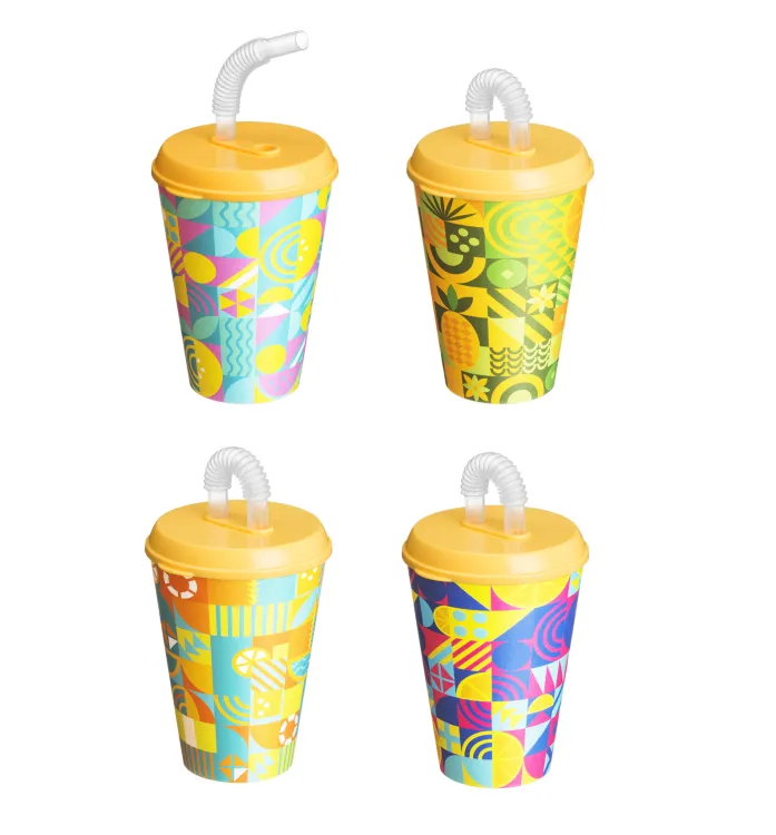 "Izi-go" Стакан с крышкой и трубочкой 420мл, цв.желтый, 4в.