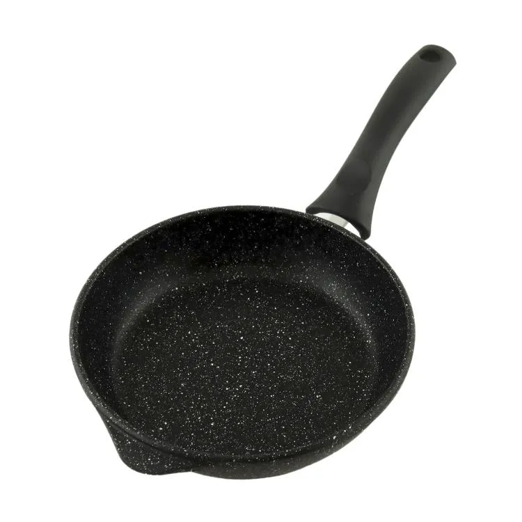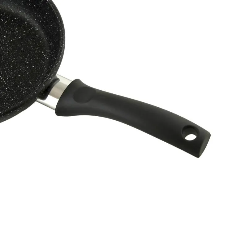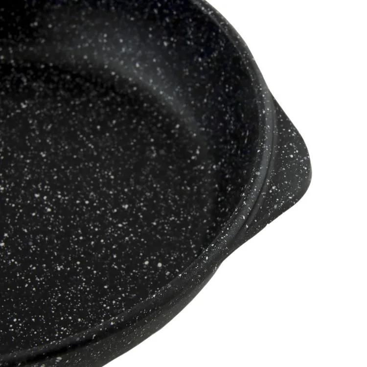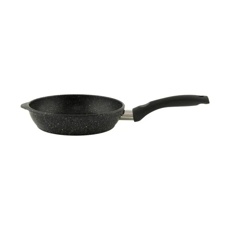 Сковорода для ежедневного использования с антипригарным покрытием в модном цвете - покрытие с эффектом натурального камня «чёрный гранит». Практичный цвет помогает долго сохранять прекрасный внешним вид сковороды.