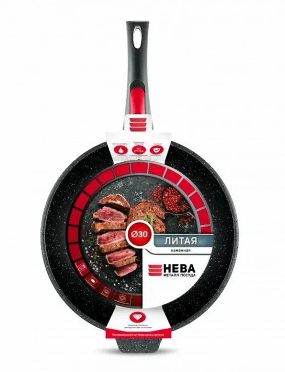 "Каменная" Чёрный гранит" Сковорода 30см, h 7см с с/р