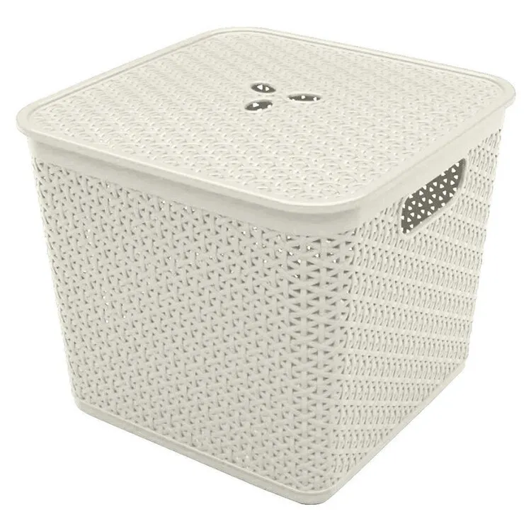 "Keeplex" Корзина для хранения "Rattan" с крышкой 21л, 30х30х28см, цв.белое облако