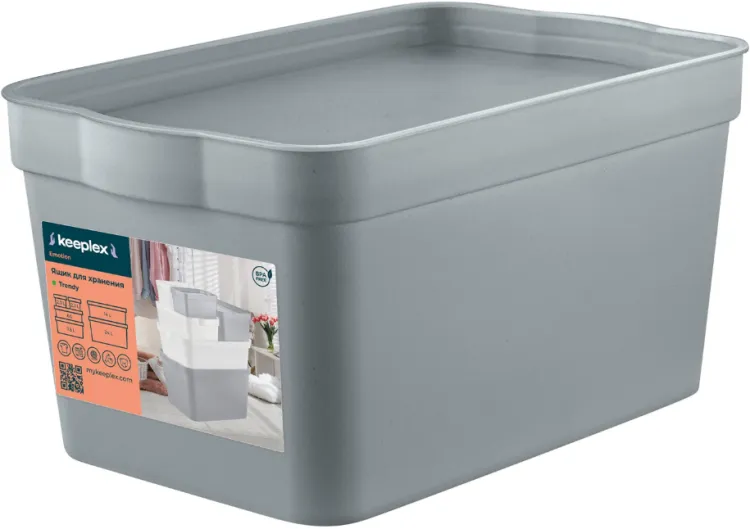"Keeplex" Ящик для хранения "Trendy" с крышкой, 2,3л, 21,1х14,1х11см, цв.серый топаз