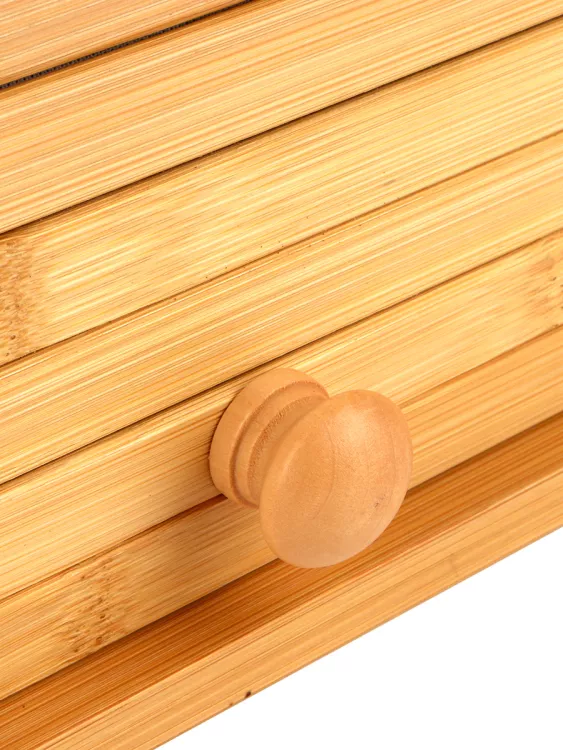 Хлебница оснащена деревянной крышкой с удобной ручкой, что обеспечивает легкий доступ к содержимому и надежно сохраняет свежесть хлеба. Благодаря бамбуковому материалу, хлебница не только долговечна, но и проста в уходе. Ее компактные размеры позволяют разместить ее на кухонном столе, не занимая много места, что делает ее практичным и удобным аксессуаром для дома.