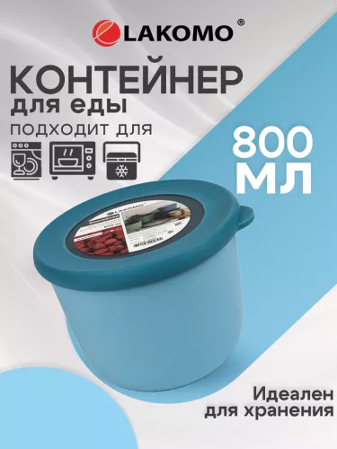 "Kitchen" Контейнер пластик 0,8л круг 14,4х13,5х10,5см, цв.голубой