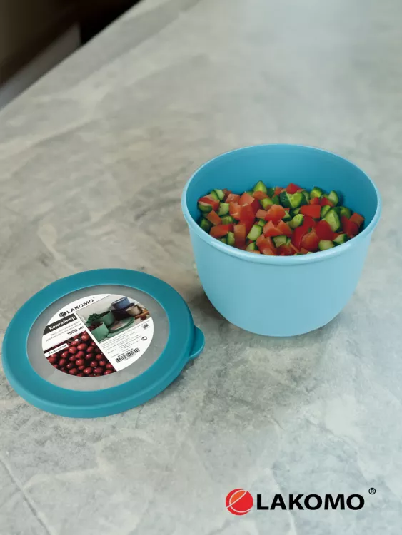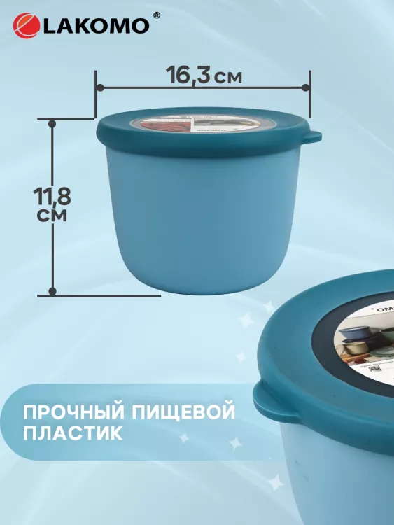 "Kitchen" Контейнер пластик 1,5л круг 17,5х16,3х11,8см,цв.голубой