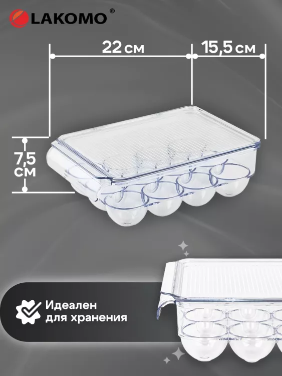Современный дизайн позволяет ставить несколько таких боксов друг на друга, что поможет организовать пространство в холодильнике и максимально эффективно использовать его. Этот органайзер прекрасно сохраняет свежесть яиц, предотвращая загрязнение. Компактный и функциональный, он станет отличным дополнением к любой кухне, обеспечивая удобство и порядок в хранении.