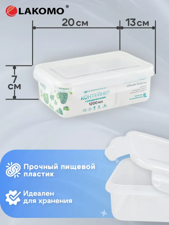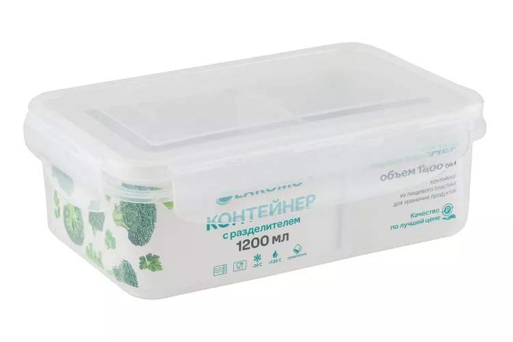 Контейнер пластик 1,2л прям 20х13х7см с разделителем