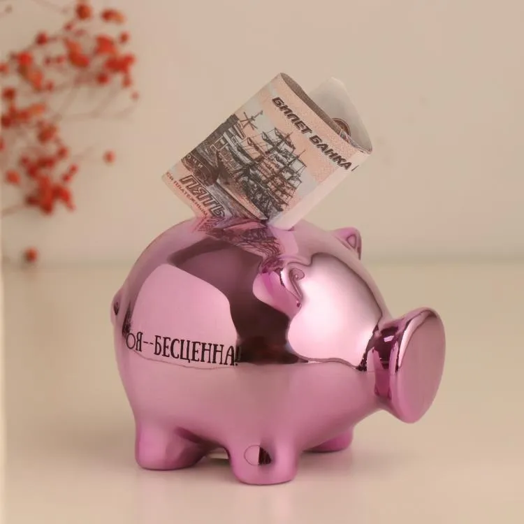 Копилка "Розовая хрюша. Я-бесценна!" 11,3х8,9х9,5см