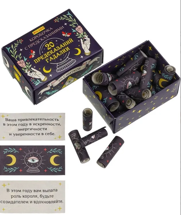 Коробочка с предсказаниями "20 предсказаний гадалки" 3х6,2см