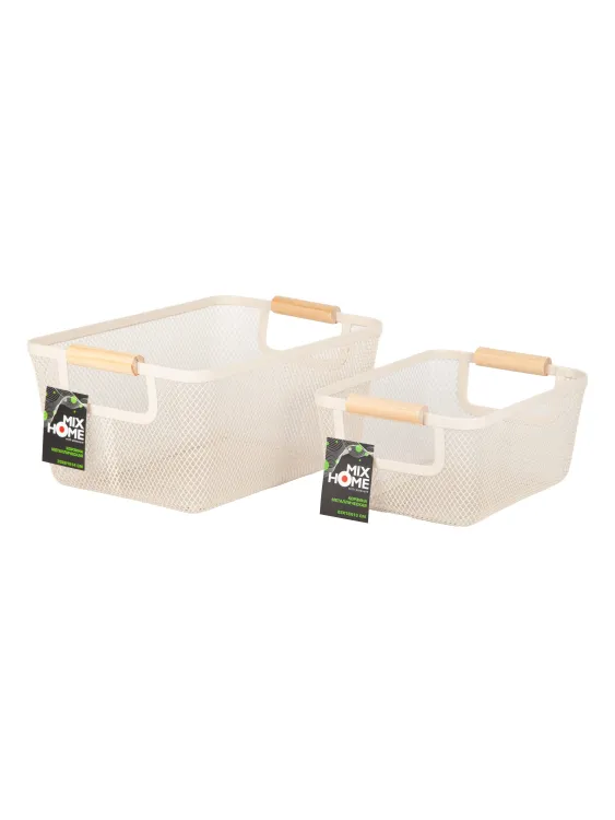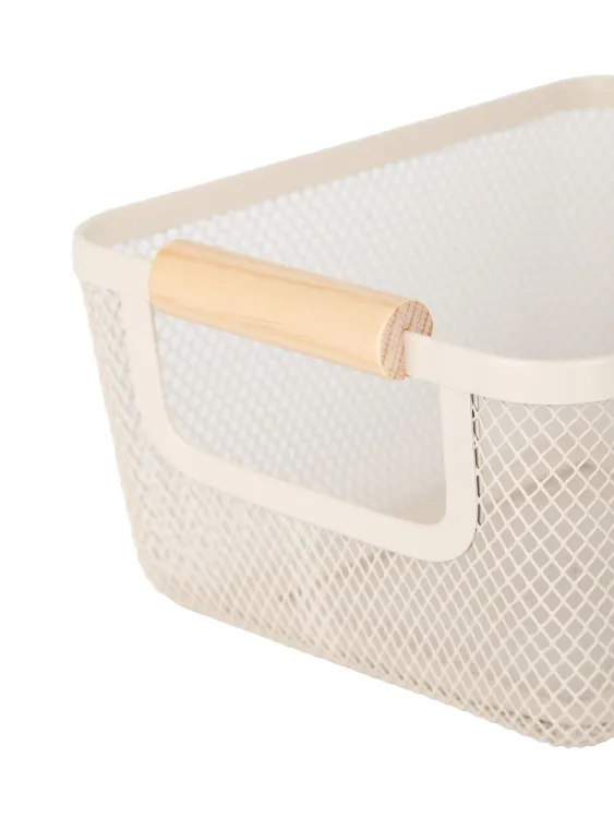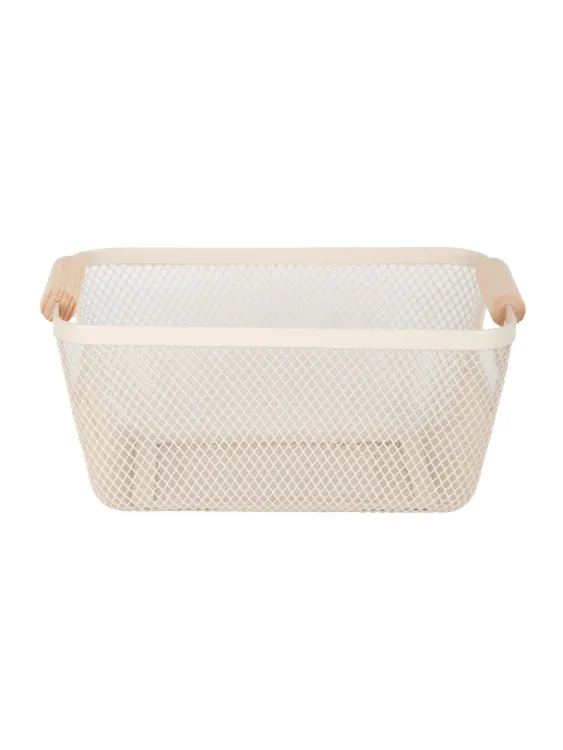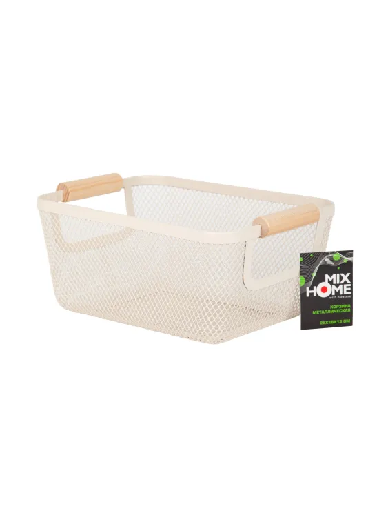 Корзина металлическая с деревянными ручками 25х18х13см, цв.молочный