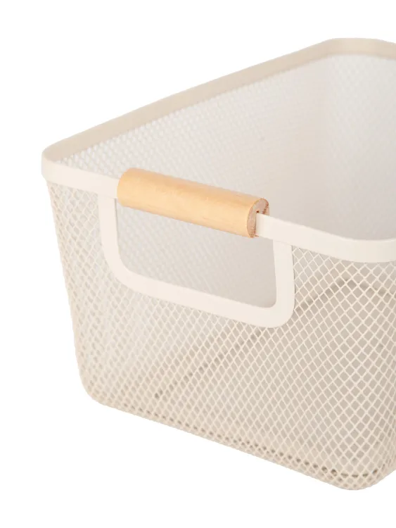 Корзина металлическая с деревянными ручками 33х21х14см, цв.молочный