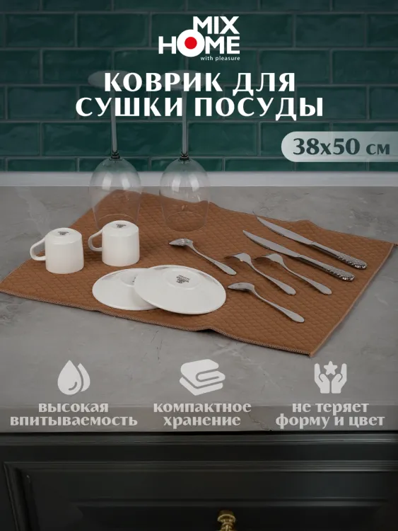 Коврик для сушки посуды 38х50см, пл.220 цв.кофе