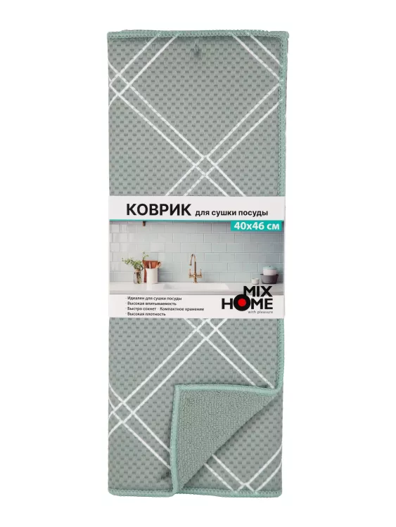 Коврик для сушки посуды "Клетка" 40х46см цв.зеленый