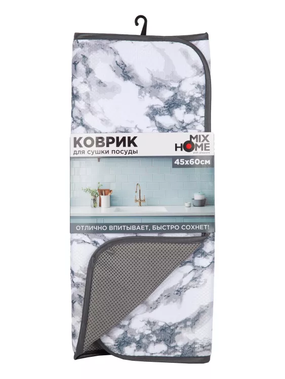 Коврик для сушки посуды "Marble" 45х60см, цв.белый
