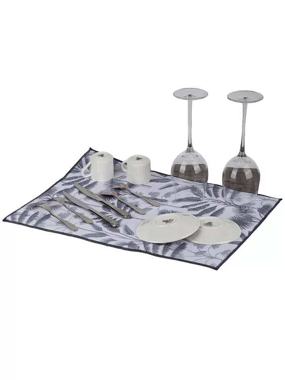 Этот стильный коврик с принтом пальмы не только функционален, но и эстетичен, добавляя нотку тропического настроения в вашу кухню. Легко стирается, что обеспечивает удобство в уходе за ним, и долговечен в использовании. Идеально подходит не только для сушки посуды, но и для сушки овощей и фруктов.