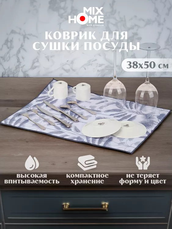 Коврик для сушки посуды - незаменимый аксессуар для вашей кухни. Его антибактериальные свойства помогают поддерживать чистоту и гигиену, защищая рабочую поверхность от развития микроорганизмов. Быстросохнущий материал обеспечивает эффективную сушку посуды, предотвращая скопление влаги и образование неприятных запахов.