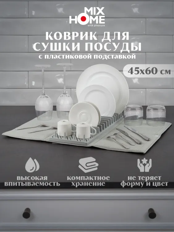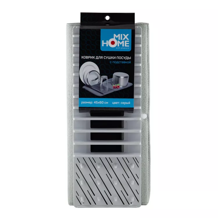Коврик для сушки посуды с подставкой 45х60см, цв.серый