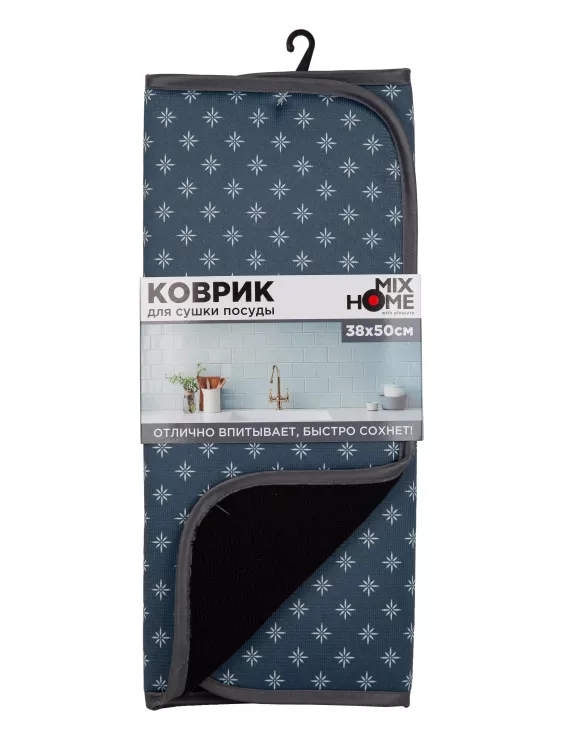 Коврик для сушки посуды "Star" 38х50см, цв.синий
