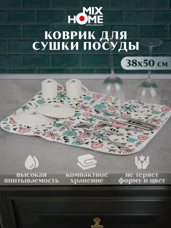 Коврик для сушки посуды "Цветы" 38х50см, пл.240