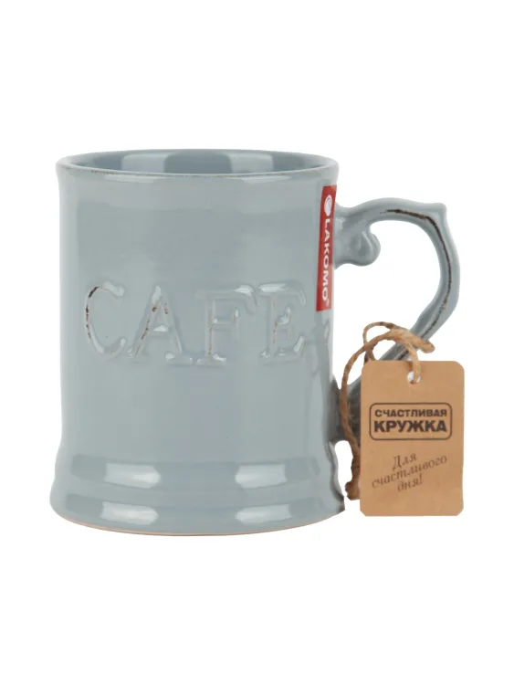 Большая голубая кружка из керамики с надписью "кафе" отлично подойдет для всех, кто любит начинать утро с крупной чашки ароматного кофе или расслабляться вечером с чашечкой чая. Данная кружка искусно совмещает практичность и винтажный стиль, благодаря чему она станет не только неотъемлемой частью вашей посуды для напитков, но и изысканным акцентом в любом интерьере.