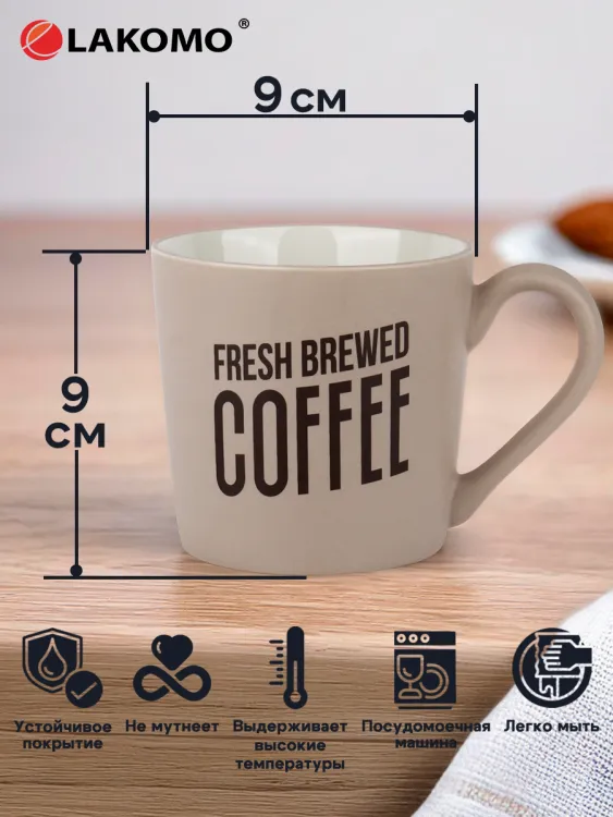 Надпись "Свежесваренный кофе" придает кружке особый шарм и делает ее отличным подарком для себя или близких. Она станет ярким акцентом на вашем столе и подчеркнет ваш безупречный вкус.