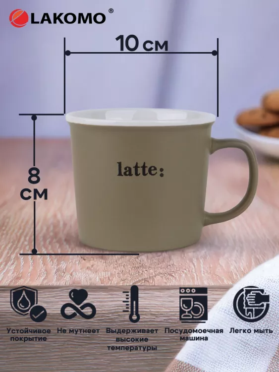 Серо-бежевая фарфоровая кружка с надписью «Латте» станет отличным дополнением для вашего утреннего кофе. Изготовленная из качественного фарфора, она идеально подходит для подачи кофе, чая и других напитков. Матовая поверхность кружки придает ей современный вид, а глубокий синий цвет с надписью «Латте» добавляет стильный акцент.