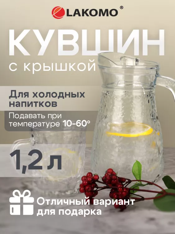 Стильный стеклянный кувшин — идеальное дополнение к вашей коллекции посуды, предназначенный для сервировки напитков на любой праздник или повседневное использование. Прозрачный и элегантный, он прекрасно подойдет для подачи воды, сока, лимонада или других любимых напитков. Его вместительность и удобный носик с дозатором обеспечат удобство в наливании, исключая проливание.