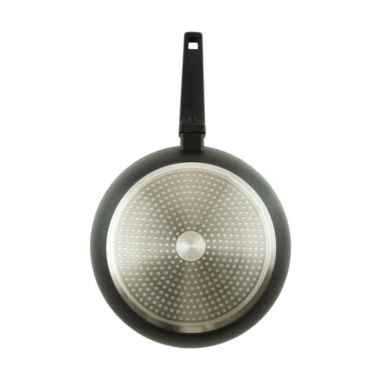 Профессиональная сковорода с толстостенными корпусом — отличный инвентарь для приготовления разнообразных блюд на кухонной плите. Литая сковорода с антипригарным покрытием и индукционным дном обеспечивает равномерный нагрев, что делает жарку легкой и приятной. Уникальная технология индикации нагрева поможет вам контролировать процесс готовки, а экологичное многослойное покрытие обеспечит долгий срок службы. Термоспот на дне станет отличным подсказчиком для определения оптимальной температуры приготовления (120 градусов). Эта алюминиевая сковорода оснащена удобной ручкой из ударопрочного пластика с антискользящим покрытием Soft Touch, которая не только хорошо лежит в руке, но и можно повесить на крючок после использования. Подходит для всех видов плит, включая индукционные. Сковорода с антипригарным покрытием — незаменимый кухонный аксессуар для эффективной и комфортной готовки.