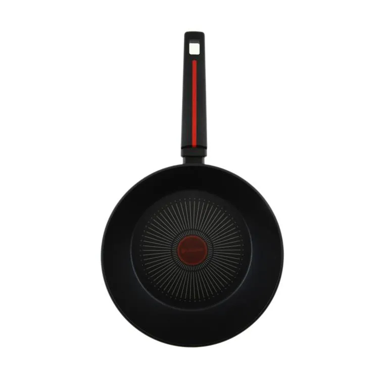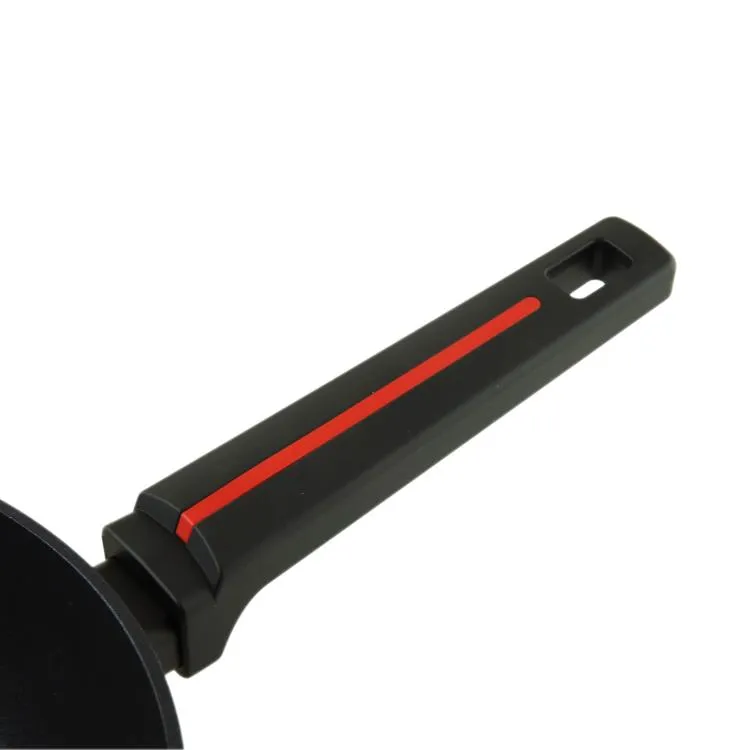Ручка из ударопрочного пластика с антискользящим покрытием Soft Touch обеспечивает комфорт и уверенность во время использования, а возможность подвеса добавит удобства в хранении. Простота ухода – ещё одно преимущество: сковорода без проблем может быть вымыта в посудомоечной машине. Термоспот указывает на достижение оптимальной температуры для жарки (120 градусов).