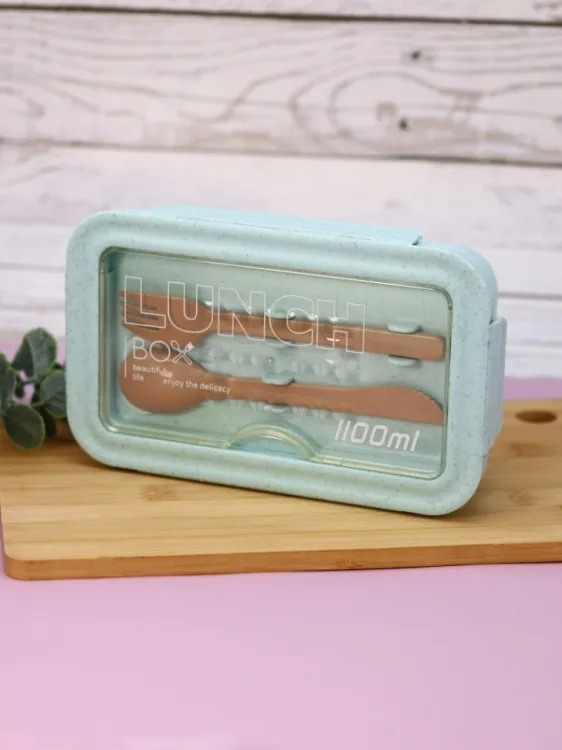 Ланч-бокс "Color classic" 1л со столовыми приборами, 21х15х8см, цв.зеленый N343-02