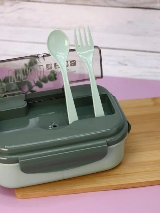 Ланч-бокс "Color classic" 1л со столовыми приборами, 21х15х8см, цв.зеленый N343-02