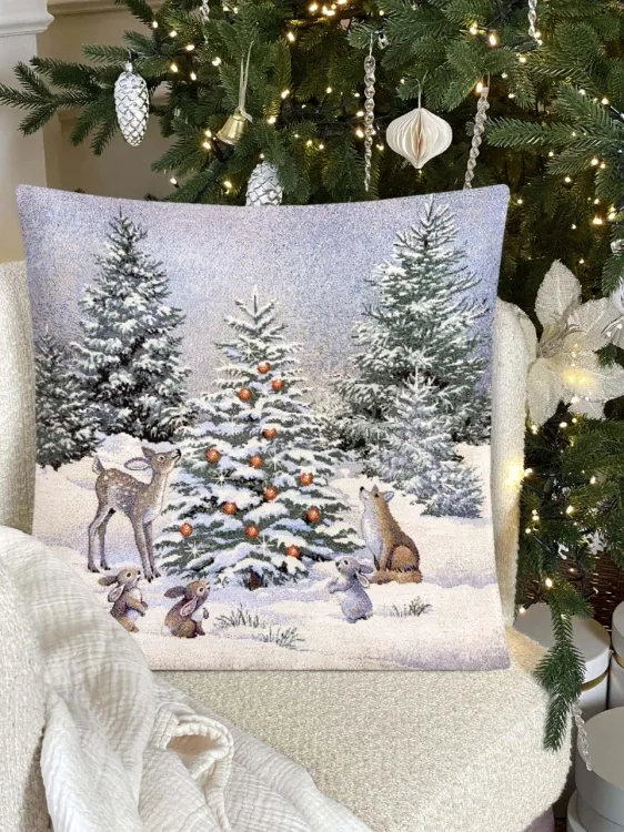 "Лесные друзья у елки" Наволочка декоративная 45х45см