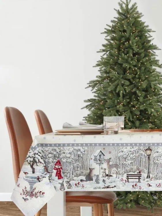 "Лесные друзья у кормушки" Скатерть 140х240см, цв.серебро