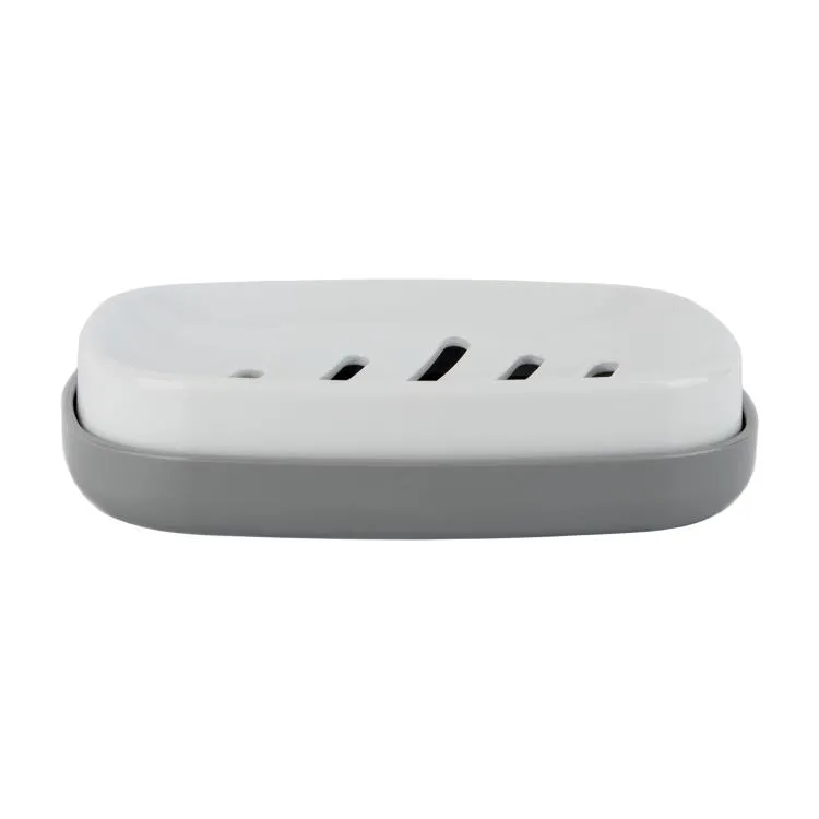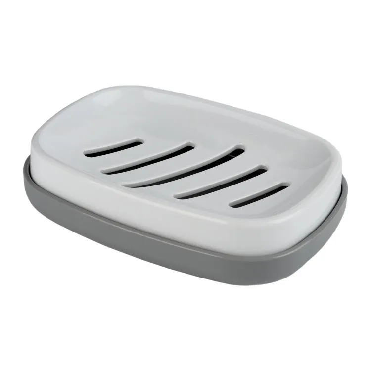 Идеальное дополнение к интерьеру вашей ванной комнаты или кухни - пластиковая мыльница в спокойных серо-белых тонах. Этот аксессуар не только красив, но и чрезвычайно практичен благодаря интеллектуальной конструкции.