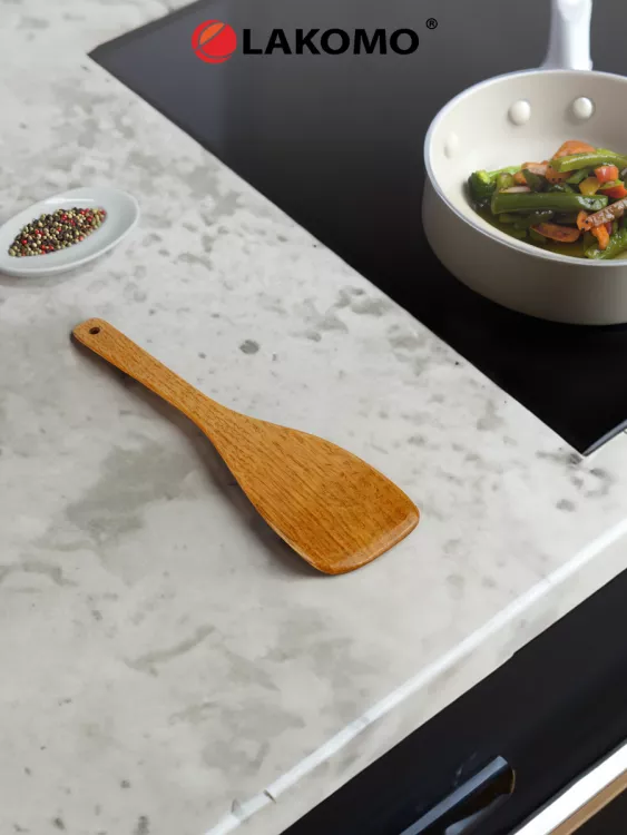 Эта кухонная лопатка – незаменимый помощник на вашей кухне. Изготовленная из экологичных материалов, она сочетает в себе прочность и термостойкость, что делает ее идеальной для повседневного использования. Деревянная конструкция не повреждает посуду с антипригарным покрытием, обеспечивая безопасное использование и долговечность вашей кухонной утвари.