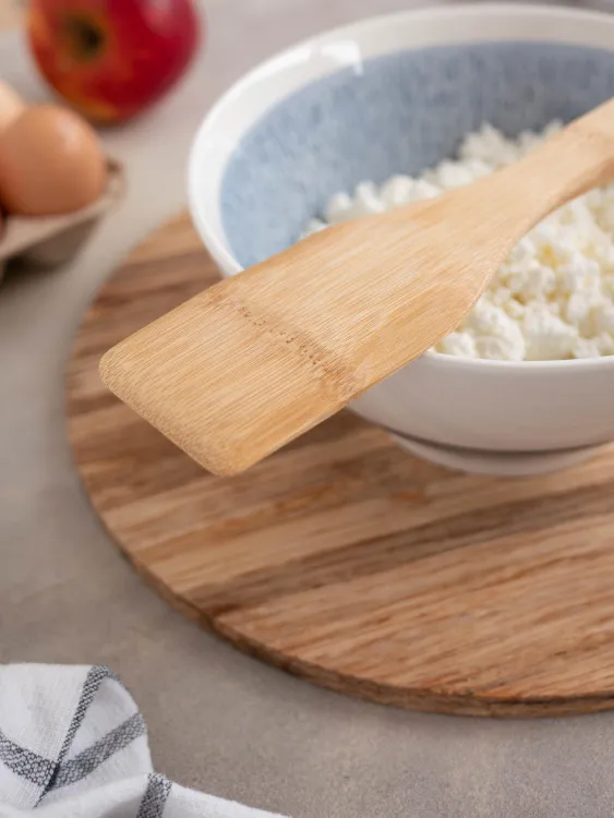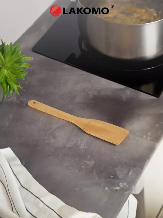 Деревянная лопатка для кухни - незаменимый инструмент для приготовления разнообразных блюд. Легкая и прочная, она идеально подходит для использования с посудой с антипригарным покрытием, не повреждая её поверхность. Лопатка оснащена подвесным отверстием, что позволяет удобно хранить её на кухне. Эргономичная ручка обеспечивает комфортное использование, а обработанная поверхность предотвращает впитывание запахов, что делает лопатку гигиеничной и простой в уходе. Она легко моется, что экономит ваше время на кухне. Эта универсальная лопатка подходит для приготовления блинов, мяса, рыбы, овощей и многих других блюд, обеспечивая аккуратное переворачивание и подачу. Благодаря своему дизайну, она впишется в любой кухонный интерьер и станет отличным помощником в процессе приготовления еды. Деревянная лопатка - это не только практичный, но и стильный аксессуар для вашей кухни, который прослужит долгие годы, радуя вас своей функциональностью и удобством.