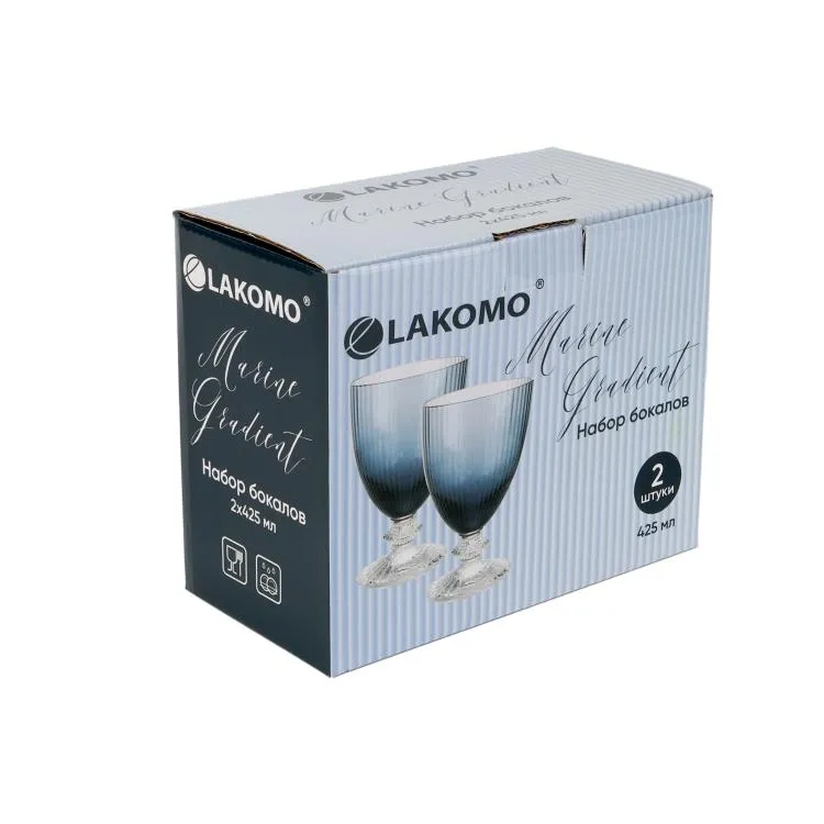 Набор из двух бокалов объемом 425 мл — это идеальное сочетание элегантности и практичности для настоящих ценителей вина и изысканной сервировки. Изготовленные из высококачественного стекла, эти бокалы прекрасно подходят как для дома, так и для кафе, бара или ресторана, добавляя шарма в любой интерьер благодаря своему стильному дизайну и уникальному морскому градиенту в синих тонах.