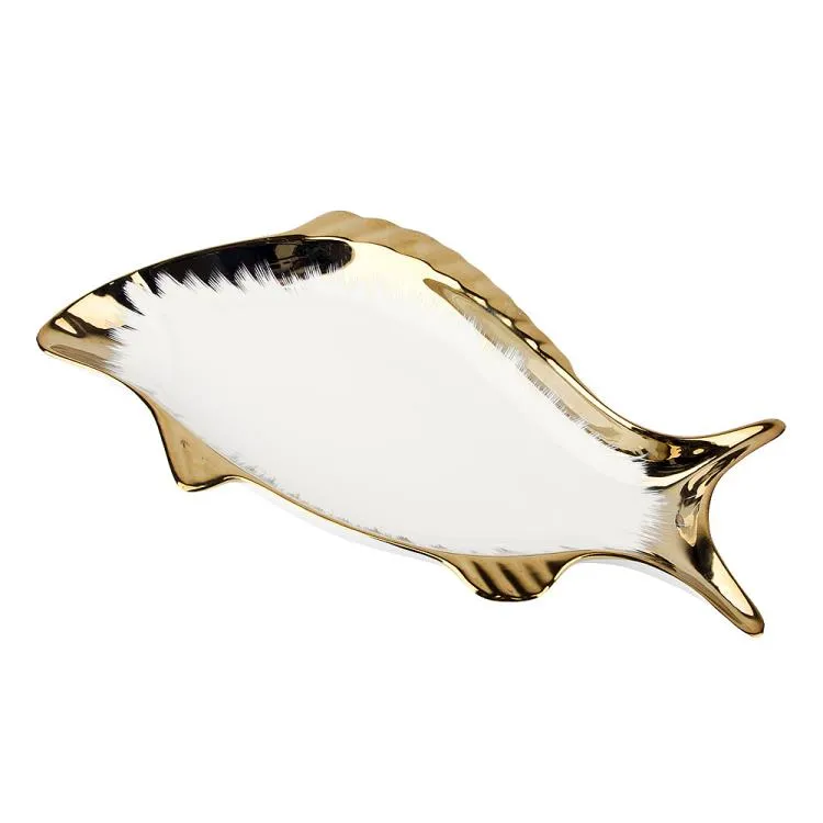 "Маршмеллоу" Блюдо сервировочное с золотой отводкой 31x15х3см
