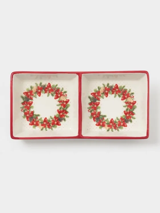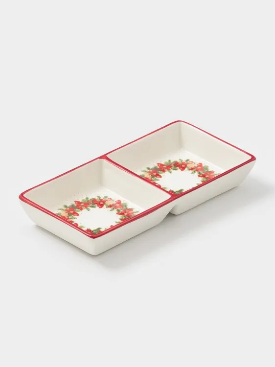 Менажница "Новогоднее настроение" 2 секции 19,8х3см, цв.белый
