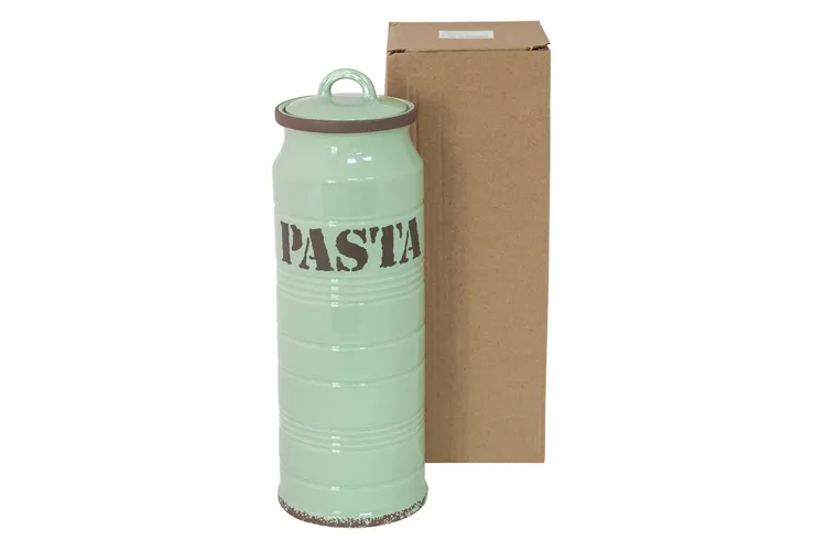 Она придётся по душе любителям минимализма благодаря своему лаконичному зелёному дизайну, который без усилий впишется в любой кухонный интерьер, украшая собой пространство. Высокая форма банки позволяет удобно расположить даже длинные макаронные изделия, обеспечивая легкость доступа и изысканный вид.