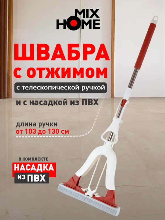 "Mix Home" Швабра с отжимом и насадкой из ПВХ, телескопическая ручка 33х103-130см