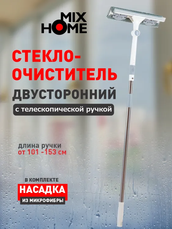 Стеклоочиститель — идеальный инструмент для эффективной уборки различных поверхностей. С двусторонней конструкцией и телескопической ручкой, регулируемой от 101 до 153 см, он обеспечивает удобство и гибкость в работе, позволяя легко достигать высоких окон и труднодоступных мест.