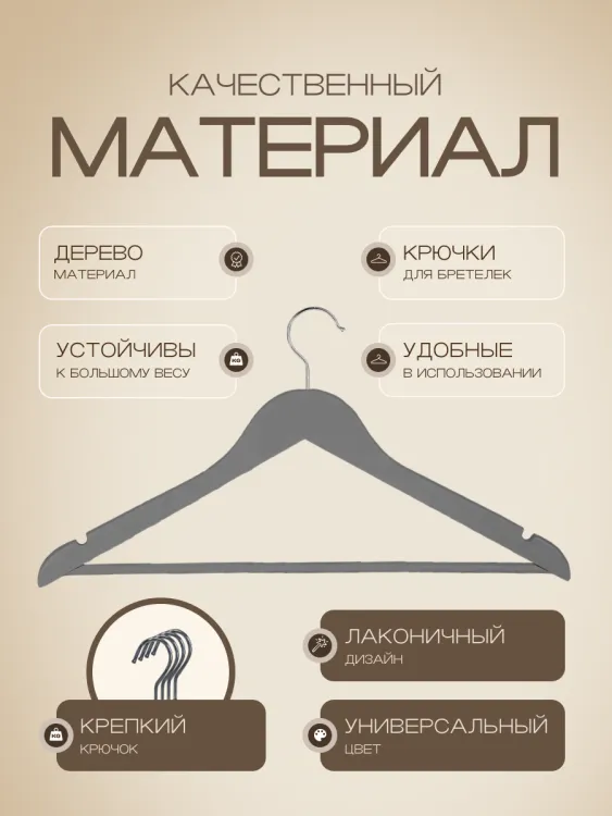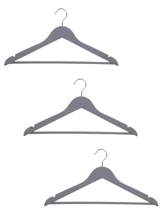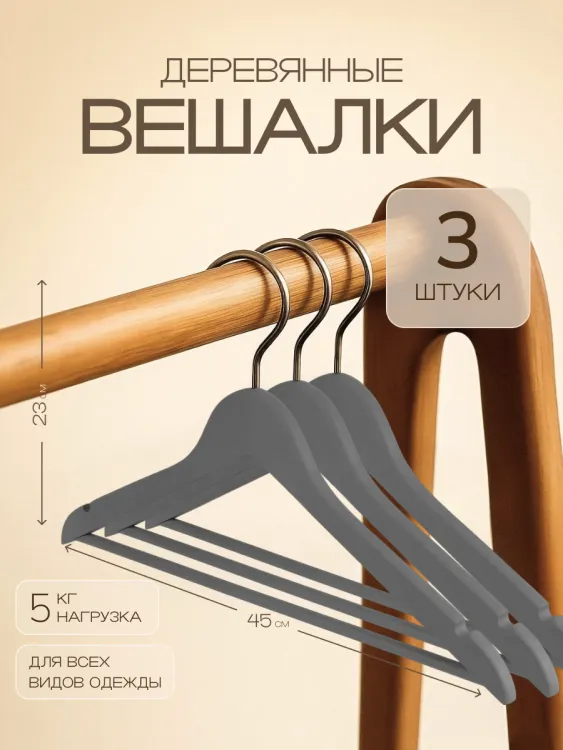 Н-р вешалок деревянные 3шт, 45х23см, цв.серый
